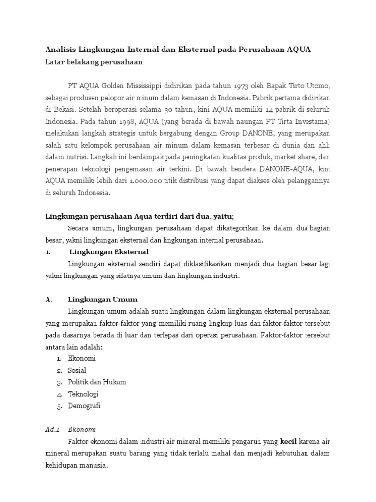 Analisis Lingkungan Internal Dan Eksternal Perusahaan Aqua