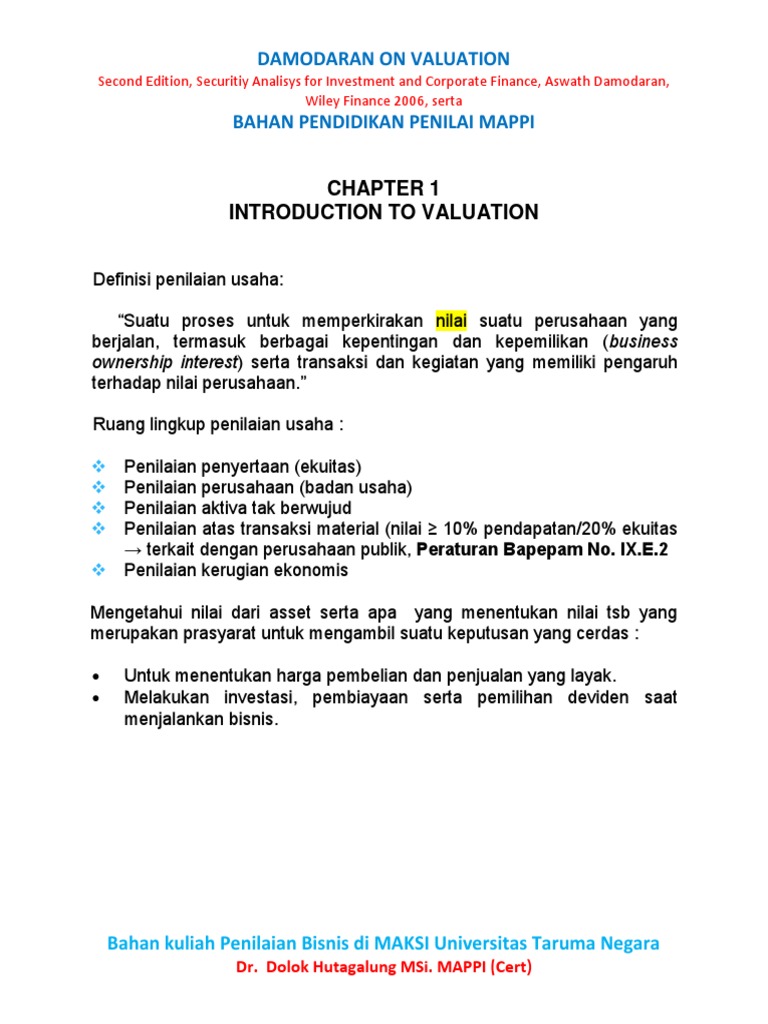Penilaian Bisnis Chapter 1, 2 Dan 3, Damodaran on Valuation